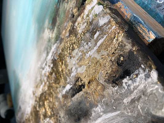 Sie werden mit edlen Materialien, 24 Karat Blatt-Gold oder Silberblatt, Naturelementen, Pigmenten oder mit Strukturen gestaltet.